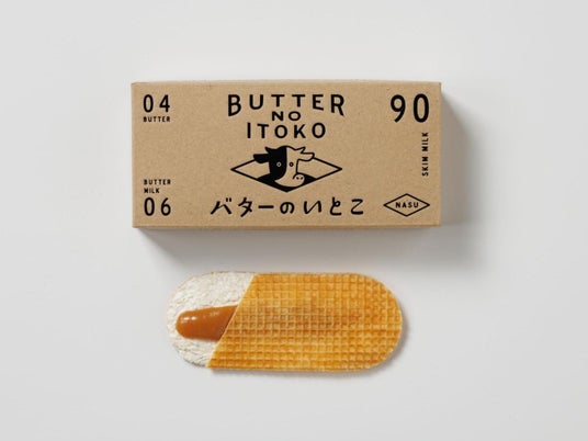 酪農家がバターを作る際に、牛乳から約4%しかバターが取れない一方で、残りの90%以上はスキムミルク(無脂肪乳)として安価に取引されたり、活用方法が見出せない現状がありました。そのスキムミルクに新たな価値を見出し、美味しいお菓子として生まれ変わらせ、また、雇用を生み出すことで地域活性化にも繋げることを目指し、「バターのいとこ」が誕生しました。 無脂肪乳から作ったミルク感たっぷりのジャムをバターが香り立つゴーフレット(ワッフル)生地でサンド。「ふわっ・シャリッ・とろっ」の3つの食感がたのしい那須のしあわせ新銘菓が「バターのいとこ」です。