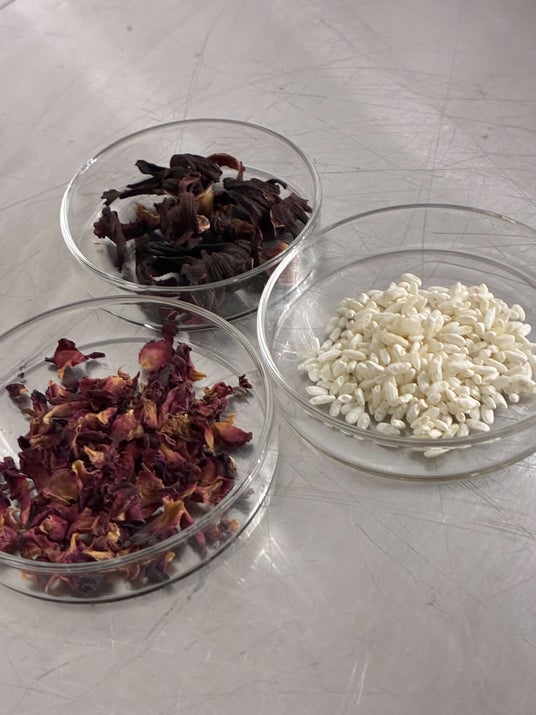 原材料:グラニュー糖、米粉、米麹、バラ、ハイビスカス、ブラックペッパー、炭酸ガス