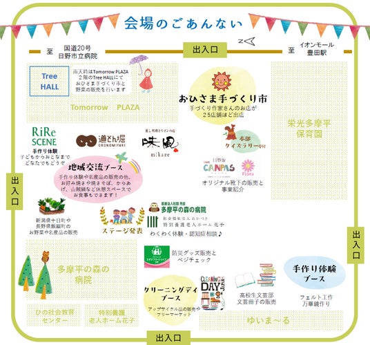 ※雨天時は規模を縮小して、TomorrowPLAZA2階TreeHALLにて、おひさま手づくり市と新潟県十日町や長野県飯綱町からのお野菜や名産品の販売のみと開催となります。