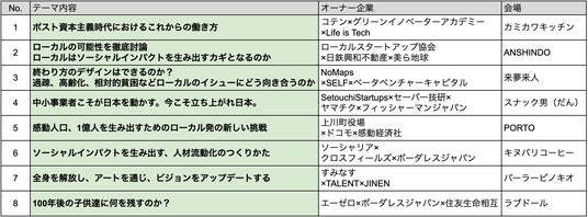 オーナー企画 まちなか共創ディスカッションのテーマとオーナー企業