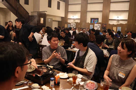 初日最後を締めくくる懇親会は、 2日目の共創ピッチのパートナーを見つける大切な場です。参加者は、1日を通して複数のチームに分かれ、さまざまなイシューについてディスカッションをしてきた内容を踏まえて「あの人と一緒に~について共創する方法を考えてみたい」と思うパートナーを見つけます。