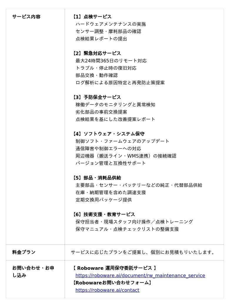 【 Roboware 運用保守委託サービス 】https://roboware.ai/document/rw_maintenance_service