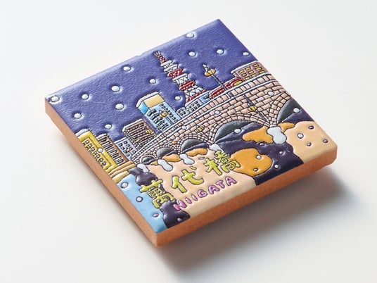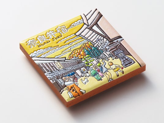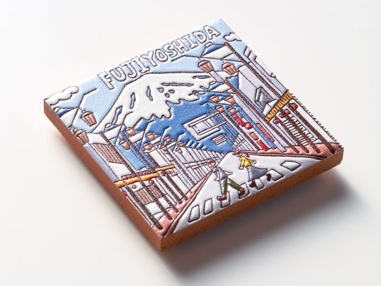 ご当地クリエイターが描いたイラストをもとに、宮城県女川町の「みなとまちセラミカ工房」が15cm角のスペインタイルを制作、そのタイルをスキャンしてPENON独自のプリント技術で立体化するという3段階の工程を経て、スペインタイルの特徴を活かした『旅するマグネット』を仕上げています。