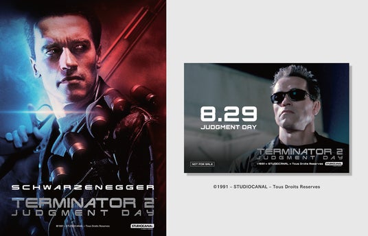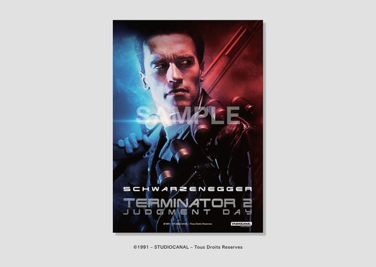 また、入場者特典として『ターミネーター2』の海外版ビジュアルを使用したミニポスター(A5サイズ)の配布も決定しました!アーノルド・シュワルツェネッガー演じるT-800の鋭い眼光が圧倒的なミニポスター、劇場で作品を鑑賞した記念にぜひお手に取ってご覧ください。