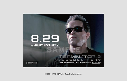 劇中、AIコンピューター「スカイネット」が自我に目覚め人類との間で核戦争が勃発する「審判の日」(ジャッジメントデイ)が8月29日であることにちなみ、その日を目前に控えたタイミングでの上映実施となった本作。このたび8月29日の上映に限り、1日限定でオリジナルステッカーを配布することが決定しました!ぜひ「審判の日」は劇場へ足をお運びください。