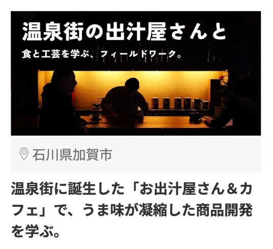 ・️「出汁と工芸」をテーマにしたフィールドワークも好評。まちの出汁屋さんと新メニューの開発を体験でき、地域資源を活かした学びのプログラムとして注目を集める。