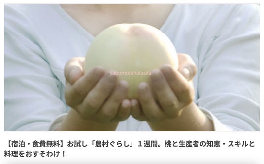【宿泊・食費無料】お試し「農村ぐらし」1週間。桃と生産者の知恵・スキルと料理をおすそわけ!