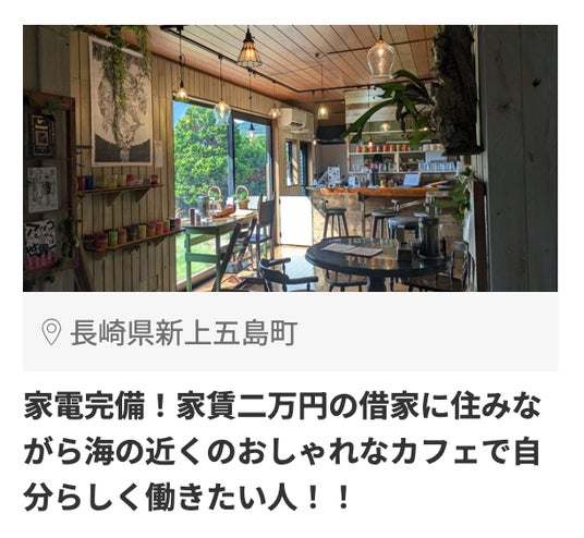 ・家電完備!家賃二万円の借家に住みながら海の近くのおしゃれなカフェで自分らしく働きたい人!!(興味ある数:371件)