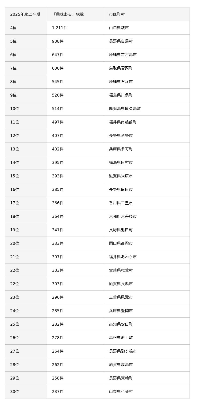 このランキングは、「スマウト」に登録している約8万人のユーザー(2025年9月30日時点)を対象に、2025年度上半期(2025年4月1日~9月30日)に地域が発信した情報(プロジェクト)に対して、同期間中に押された「興味ある」ボタンの合計数を集計して作成しています。
