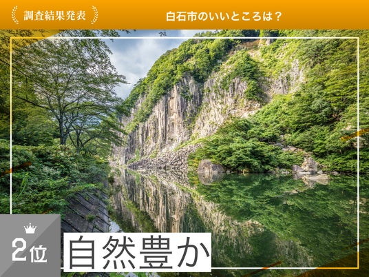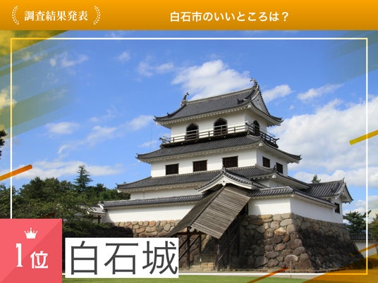 約202人の宮城県ファンに「白石市のいいところは?」をアンケート調査したところ、1位「白石城(35票)」、2位「自然豊か(31票)」、3位「温泉(29票)」という結果になりました。