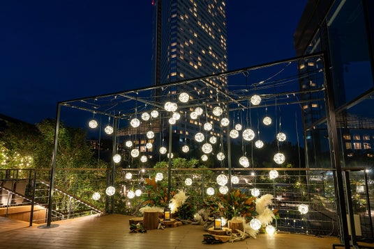 ホテルに隣接する宿泊者専用のガーデンエリア「THE LIVING GARDEN」に、夜空の星が舞い降ります。たくさんのあかりに照らされた水辺は、まるで星降るガーデンのよう。プールサイドには巨大スノードームや三日月型のオブジェが輝き、焚火のリビングにはあたたかな光に包まれた幻想的なフォトスポットが今年も登場します。