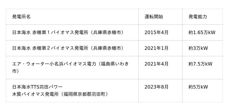 (ご参考)エア・ウォーターグループが保有する主要なバイオマス発電所 発電所名 運転開始 発電能力