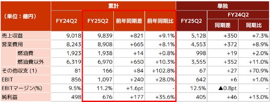 当第2四半期は、売上収益は前年比+9.1%の9,839億円となりました。営業費用については、収入に連動する費用の増加や物価高、人的資本投資の増加などにより、前年比+8.1%の8,908億円となりました。