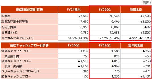 2025年5月2日「2025年3月期決算短信」にて公表しました2026年3月期通期の業績予想(連結売上収益1兆9,770億円、EBIT2,000億円、当期利益1,150億円)および年間配当金予想(1株当たり92円)に変更はありません。このうち、中間配当は1株当たり46円と決定しております。