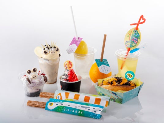 メニューは、水族館ならではの生き物をモチーフにしたスイーツやドリンクをご用意しています。フリソデエビやハリセンボンなど、スイーツメニューとしてはなかなか見かけない生き物が楽しいスイーツに変身しました。また広島県や瀬戸内エリア産のクラフトビールや丸ごと生絞りジュースもラインナップ。「CAFE UMIHAKO」だから出会えるメニューをぜひご賞味ください。
