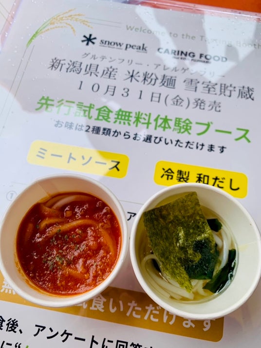 今回発売する『雪室米粉麺』は、2025年9月25日に発表したスノーピークとケアリングフードの共同開発による新商品で、新潟県産の雪室熟成米粉を使用した28品目アレルゲンフリー・グルテンフリー対応のアウトドアフードです。「誰でも食べられるキャンプ飯」をコンセプトに、自然と調和した“やさしいおいしさ”を追求しました。