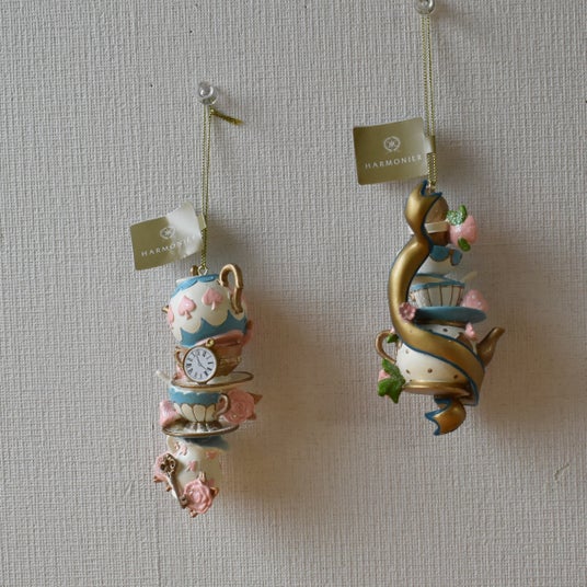 「アリスインワンダーランド」から抜け出してきたようなウサギやトランプのオーナメントなど