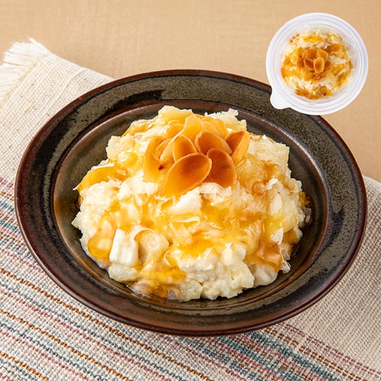 きめが細かく、口どけのなめらかさが特長の信州産クリームチーズを使用した真っ白なポテトサラダに、パルメザンチーズのコク、メープルソースの甘さ、アーモンドの食感を追加し、食べ進めながら変化を楽しめる仕立てです。