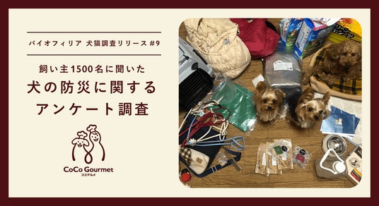 会員愛犬数25万頭(※1)を突破した愛犬用フレッシュペットフード(※2)「CoCo Gourmet(以下:ココグルメ)」、愛猫用「Miao Gourmet(以下:ミャオグルメ)」を開発・販売するスタートアップ、株式会社バイオフィリア(本社:東京都新宿区、代表:岩橋洸太)は、犬と暮らしている飼い主1527名に対し、愛犬の災害対策に関する全国調査を行いました。