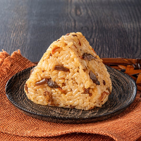 東北で親しまれている「鶏ごぼう味めしおむすび」です。青森県産ごぼうと鶏すり身、人参、蒟蒻、揚げ、椎茸を使用し、具材感のある一品です。