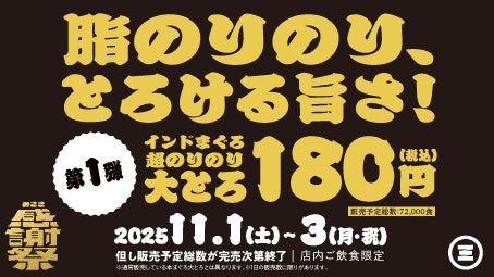 『みさき感謝祭』は、11月1日(土)~3日(月・祝)までの3日間に第一弾、11月4日(火)~10日(月)に第二弾を店内飲食限定で開催いたします。第一弾はみさきこだわりのインドまぐろをお楽しみいただけます。脂のり抜群でとろける旨さを味わうことができる「インドまぐろ超のりのり大とろ」が180円(税込)で登場いたします。脂のり抜群の大とろは、「回転寿司みさき」自慢の赤シャリとも相性抜群です。また、第二弾では、寿司をすべて10%OFFでお楽しみいただけます。豊洲直送の鮮度抜群の鮮魚※1も、ボリューム満点で人気を博しているみさきの鬼ネタシリーズも、寿司を全て10%OFFで味わうことができます。
