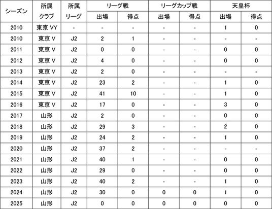 - 天皇杯通算11試合出場0得点※東京ヴェルディユース時に天皇杯1試合出場0得点
