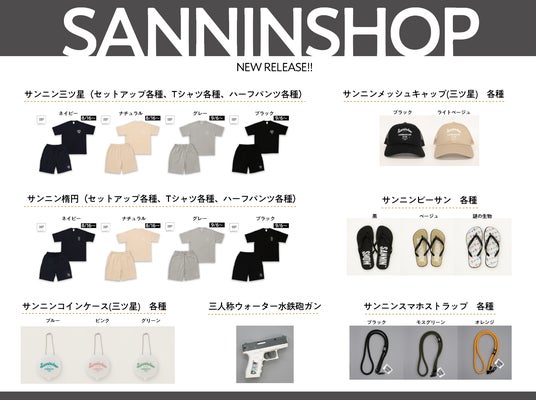 8月16日より、公式オンラインショップ『SANNINSHOP』にて新商品の販売を開始いたしました。
