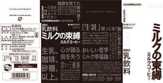 また、全国(北海道、沖縄県を除く)でご好評いただいている『ミルクの束縛 ミルクコーヒー』は、製品の安定供給体制を強化するため、11月より北陸、中部、近畿、中国・四国、九州地方で販売する製品において、兵庫県の共進牧場の生乳を使用したものに切り替えます。これに伴い、同地方限定でパッケージデザインをリニューアルします。