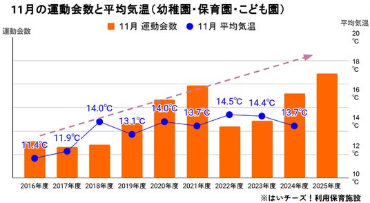 温暖化で運動会は「晩秋」へ移行。11月開催は10年で約3倍に増加