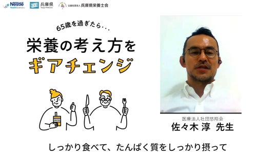 このたび、啓発の一環として、在宅医療のトップランナーであり、「栄養の考え方をギアチェンジ」の監修医師である医療法人社団悠翔会の佐々木淳先生による解説動画を、「ひょうごチャンネル」(兵庫県インターネット放送局)にて公開しました。