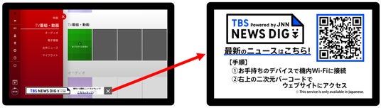 TBSテレビをキー局とするJNN28局のニュースメディア「TBS NEWS DIG Powered by JNN」 (以下「TBS NEWS DIG」)は、日本航空株式会社(本社:東京都品川区、代表取締役社長 グループCEO:鳥取三津子、以下「JAL」)と連携し、JAL国内線の個人用モニター上に表示された二次元バーコードをお手持ちのデバイスで読み込むことで「TBS NEWS DIG」へアクセスできるようになりました。これにより、お客さまに最新ニュースをお届けします。
