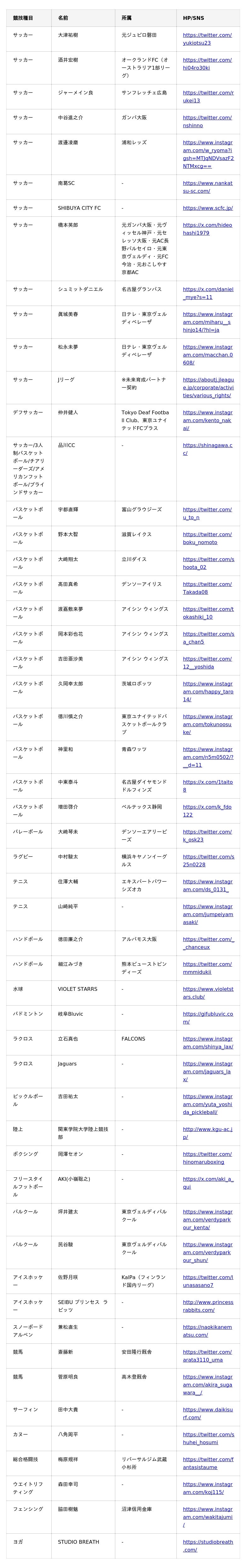 <BASE UP SPORTS サプライヤー契約一覧(現時点)>
