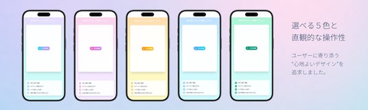 社内スタッフで構成されたプロジェクトメンバーがつくりあげました。現場経験があるからこそ分かる“お客様目線“を大切に、画面の色や操作感も細やかにこだわっています。アプリの配色は、気分に合わせて選べる5つのカラーデザインを採用し、ユーザーがアプリを通して “自分の肌を見つめる時間” を心地よく感じられるよう工夫しています。