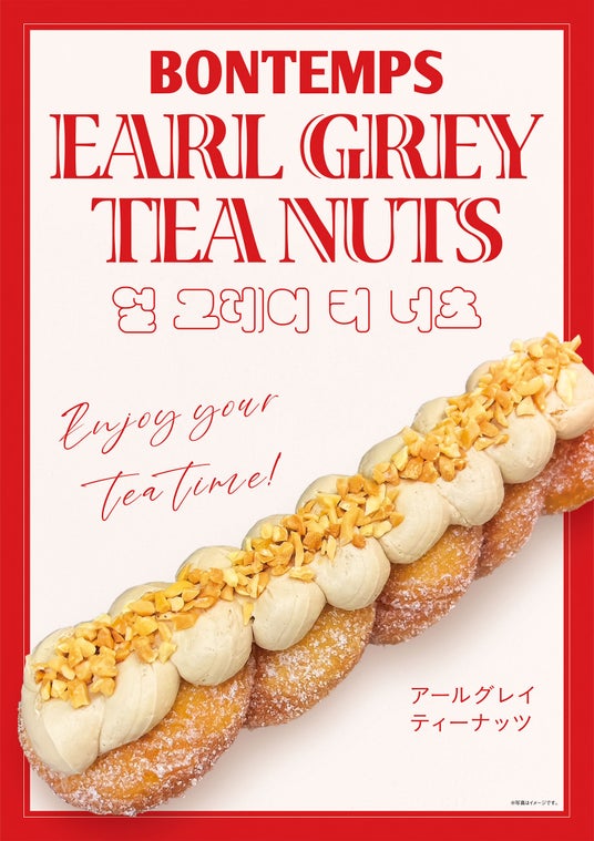 韓国式ねじりドーナツ(クァベギ)〉の人気ブランド『BONTEMPS(ボンタン)』から、秋の訪れとともに、期間限定ドーナツ「アールグレイティーナッツ」を11/5(水)より販売いたします。紅茶の芳醇な香りとナッツの香ばしさをひと口に閉じ込めた、ティータイムにぴったりの一本です。