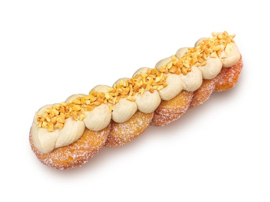 生地にシュガーをたっぷりまとわせ、ふんわりほどけるクァベギのやさしい甘さを引き立てました。そこに、ベルガモット香るアールグレイクリームを贅沢に絞り、仕上げにはピーナッツをまっすぐにトッピング。紅茶の奥深い香りと、クリームのまろやかな甘み、ナッツのカリッと歯ざわりが織りなす、上品で満足感のある一品です。