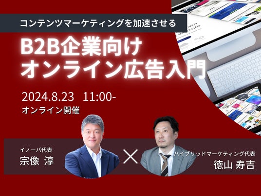 株式会社イノーバ(東京都新宿区、代表取締役:宗像 淳)と、株式会社ハイブリッドマーケティング(本社:大阪府大阪市、代表取締役:徳山寿吉)は「コンテンツマーケティングを加速させる BtoB企業向けオンライン広告入門」をテーマに共同で無料ウェビナーを開催いたします。