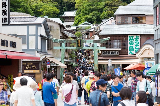 神奈川県の相模湾に浮かぶ「江の島」は、自然と歴史が調和した人気の観光地。なかでも「弁財天仲見世通り」は、江島神社へ続く情緒ある参道で、旅館や飲食店が並び、グルメや買い物が楽しめます。日本三大弁財天のひとつをお祀りしている「奉安殿」など歴史的スポットも点在。散策後は神秘的な洞窟「江の島岩屋」まで足をのばすのもおすすめです。