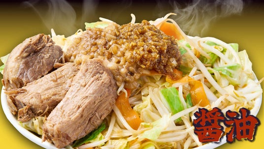 一番人気は「 野菜炒め醤油 」で、野菜の量、ニンニクの量、アブラの量、肉の量、ご飯の量、などをカスタマイズできる、皆様大好き二郎系テイストの野菜炒めとなっております。