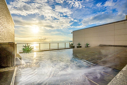 別府湾から昇る朝日を眺める絶景露天風呂。非日常のひとときを感じる温泉体験を。