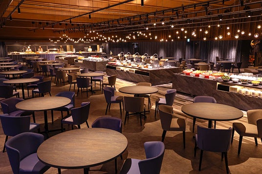 スタイリッシュな空間でありながら、活気溢れるライブキッチンを備え、ステーキ*やピザなど焼きたて、出来立ての美味しさもご提供いたします。