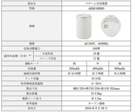 アイリスオーヤマ株式会社(本社:宮城県仙台市、代表取締役社長:大山 晃弘)は、フライパンのコーティング技術により、水タンクに汚れが付きにくく、簡単に手入れできる「スチーム式加湿器」を2024年8月26日よりインターネットサイトを中心に、全国のホームセンターや家電量販店などで順次発売(※1)します。