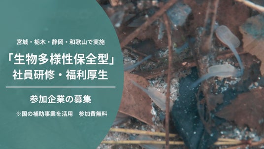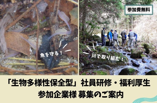 生物多様性保全型 社員研修・福利厚生 参加企業募集宮城県、栃木県、静岡県、和歌山県にて、各地の漁業協同組合連合会などと連携して、川を起点にした「生物多様性保全型」社員研修・福利厚生プログラムを開始します。無料のトライアル体験に参加していただける事業者を募集します。