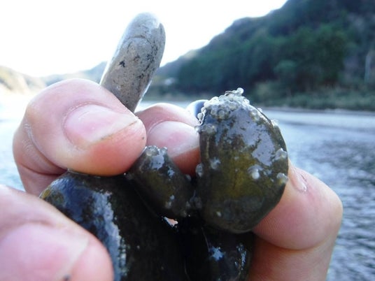 【研修イメージ】アユが産卵しやすい環境を整えます(写真は石についたアユの卵)