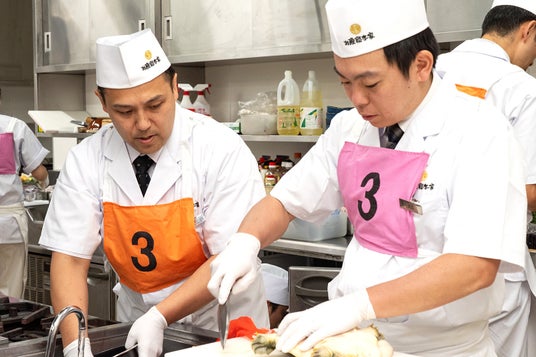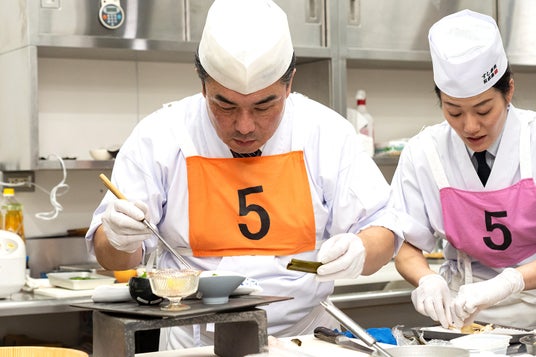 大会では、料理の美味しさはもちろん、手際のよさや盛り付けの美しさ、衛生的で食材ロスがないかなど、総合的な技能が試されます。準決勝戦・決勝戦からのテーマはコース料理となり、助手が参加。コースのテーマ性や料理のバランスの他、チームワークも評価基準になります。決勝戦では、和食や洋食など名だたる審査員をゲストに迎え、厳しい審査を行います。