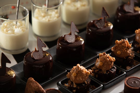 ピアノショコラショートケーキ、オペラ、カフェショコラ、ショコラカラメルサレ、プラリネショコラミルク、ドームショコラブラン、ショコラバナナクレープ、ホワイトチョコレートパンナコッタ、音符クッキー、ショコラクレームブリュレ、ショコラカヌレ、ショコラマカロン、タルトショコラ、ショコラフィナンシェ、チョコレートファウンテン など全30種