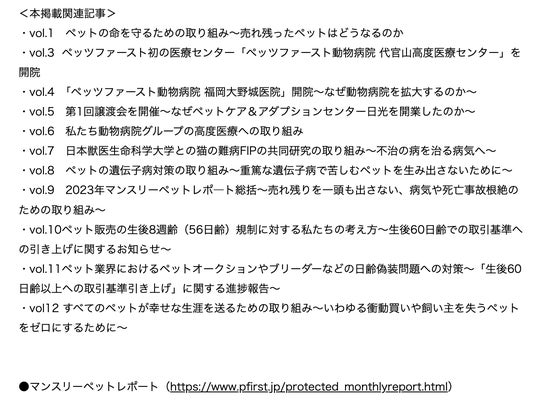 今回指摘されたペットは、全て間違いなく当社の考える理念に基づき、正しいプロセスで取引をされ、担当者や獣医師によるダブルチェックを受けています。当社は誠実に取材対応を受けたにも関わらず、こちらの意図は反映されず、今回の記事のような法令違反を疑われることは甚だ心外であり、法的手段も、検討しておりますが、引き続き当社はこれからも誠実にペット販売に向き合い、動物福祉の向上を目指し、正しいペットの販売モデルをしっかりとペッツファーストらしく構築していこうと考えています。
