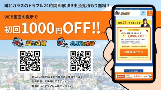 「鍵のかけつけ本舗」「ガラスのかけつけ本舗」を運営する株式会社ライフ&テクノロジーズ(所在地:千葉県千葉市、代表取締役:水野辰章)では、WEB画面の提示で初回1000円オフキャンペーンを実施中です。