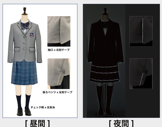 【安全へのこだわり:スカート&ブレザーに反射材を使用】