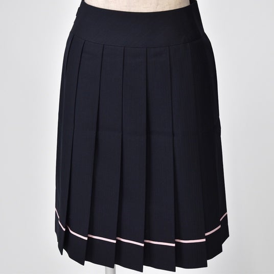 九里裁縫女学校設立当時の制服である「袴」から着想を得たピンクのラインを取り入れたデザインです。ウエスト部分にはカーブベルトを採用し、シルエットにこだわりました。