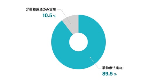 実際に高血圧治療において、薬物療法を実施している割合は89.5%。一方で、高血圧症治療アプリの処方経験がある医師80名で「薬頼みになってしまう」と思っている人は54%であり、患者さんにおいても高血圧治療への不満を聞くと、「薬を飲んでも改善しない(51%)」「医療費や薬剤費がかかる(49%)」「薬を飲むとやめられない(47%)」がトップ3であり、双方とも薬物療法に対して懸念を感じていることがわかる。